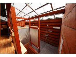 木を基調とした施設で長瀞の自然を感じてください!更衣室やウッドデッキは十分なスペースで、団体のお客様でも安心です!更衣室内に設置されている温水シャワーは、お隣との仕切りがあるブースタイプ。ドライヤーも完備していて、ツアー後の身支度も安心!思いっきり水遊びできます。