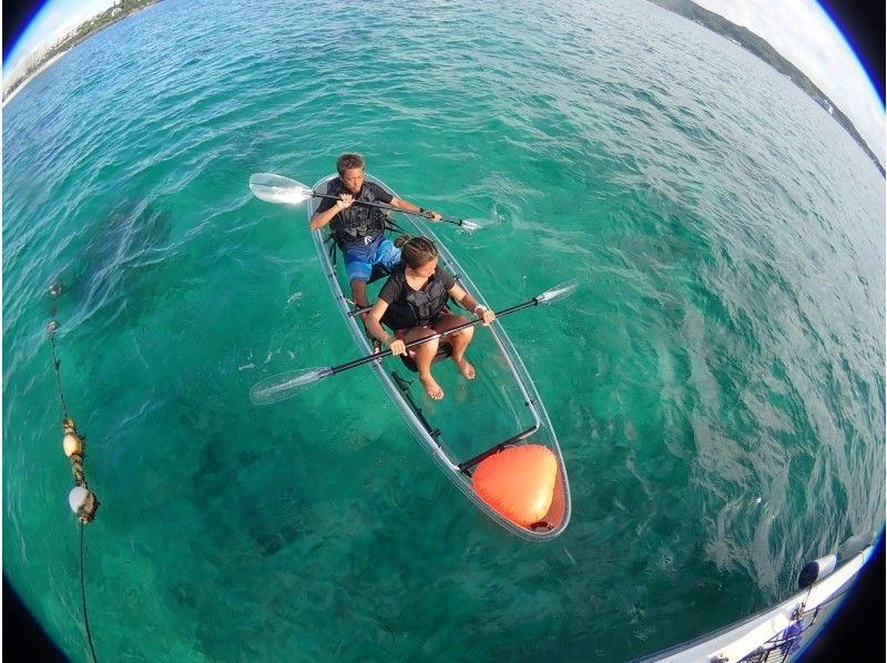 透明のカヤックに乗って恩納村の海を遊ぶことができます!