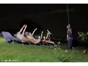 リクライニングシートをご用意しています。ぜひ、寝転がってリラックスして満天の星空に癒やされてください!認定を受けた星空ガイドが、レーザーポインターを使って、島の方言も織り交ぜながら、楽しく分かりやすく星や星座案内を行います☆また、天体望遠鏡や双眼鏡を使って星や惑星、月の観測も行います!