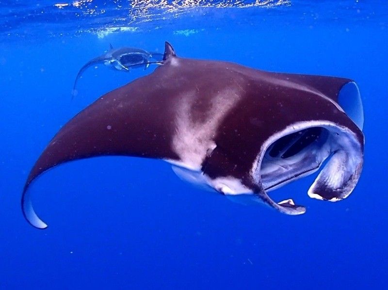 ダイビング船で海況が許す限りウミガメやマンタのポイントへ向かいます。安心の完全少人数制でゆっくりのんびりシュノーケリング!
