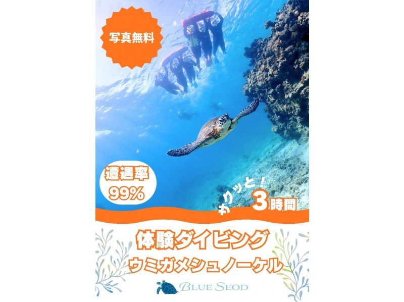 ウミガメシュノーケルと体験ダイビングを一度に楽しめる人気プランです。