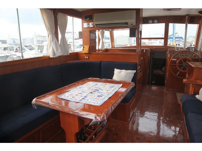 ゆったり過ごせる空間 船内にはゆったりお過ごしいただけるようソファが設けられています。空調も完備されているので1年通して楽しむことができる。 水洗トイレもしっかりございますよ。