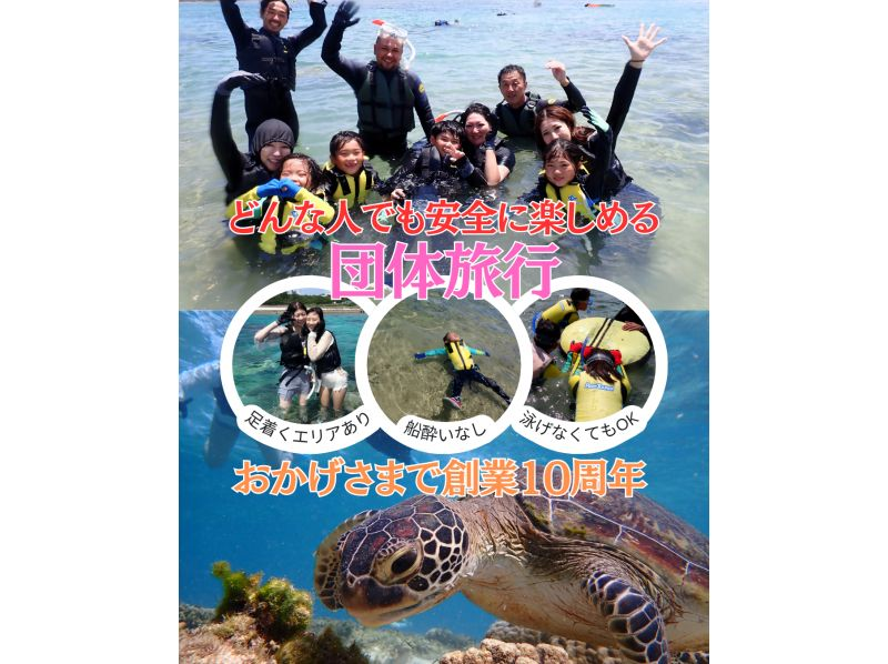 【沖縄 糸満から約15分|団体割プラン】海のテーマパーク・天然水族感でウミガメ&100種以上の生物探索シュノーケリング|送迎可|初心者大歓迎