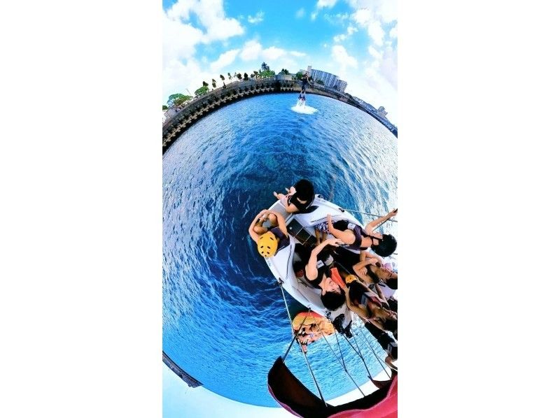 【沖縄・那覇・宜野湾】手ぶらでOKウェットスーツ有り★当店だけ“オリジナルボート”でフライボード!360℃カメラ写真無料プレゼント★