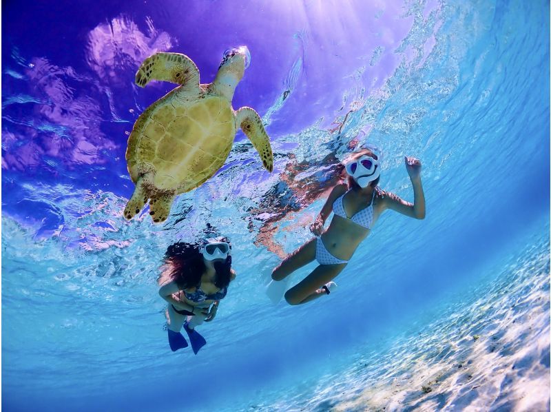 高遭遇率!ウミガメと泳ごう! 季節を問わずウミガメと出会えます!ご友人同士・ファミリー・カップル・お一人様ももちろん大歓迎です!