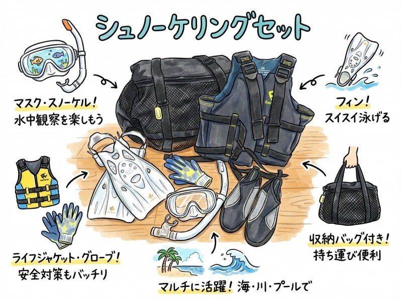 シュノーケリングに必要な器材が全て揃ったセットです。