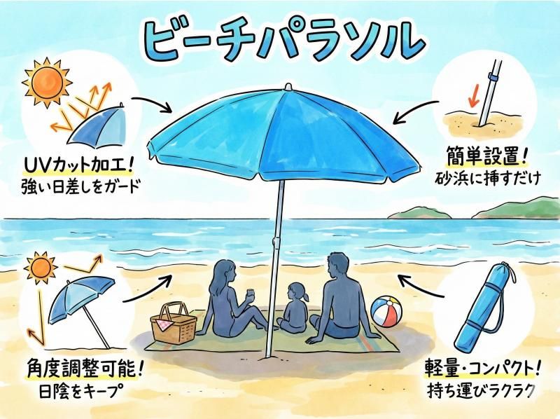 《ビーチパラソルレンタル》空港から車で10分