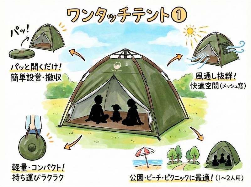 《ワンタッチテント①(1~2人用)レンタル》空港から車で10分