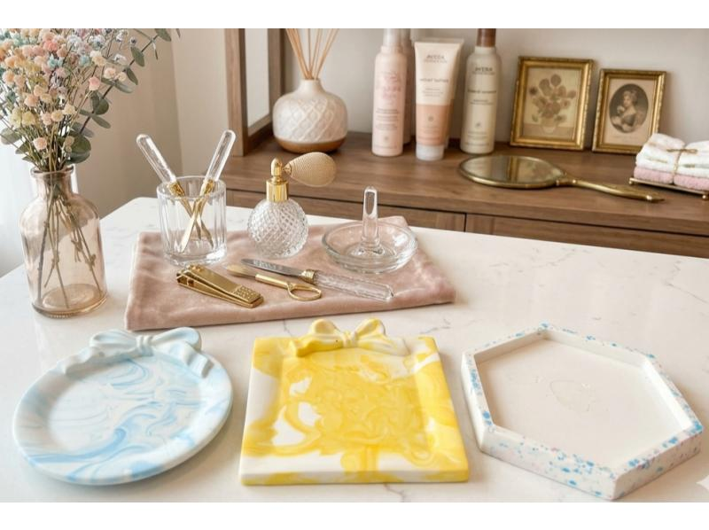 陶器のような質感が特徴でアクセサリーやコスメ、腕時計などを美しく演出してくれます。