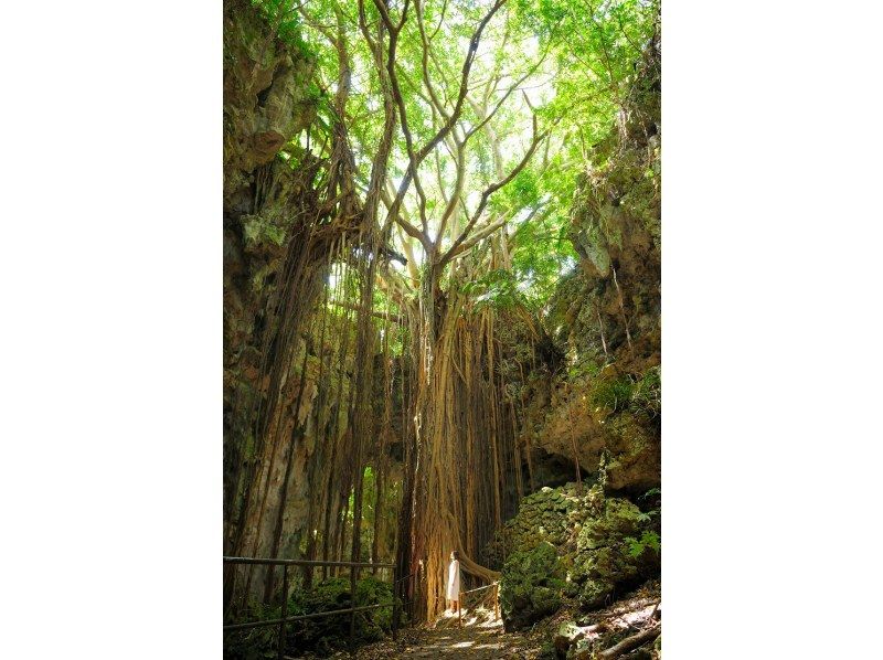 数十万年前の鍾乳洞が崩れてできた谷間にガジュマルなどの亜熱帯植物が