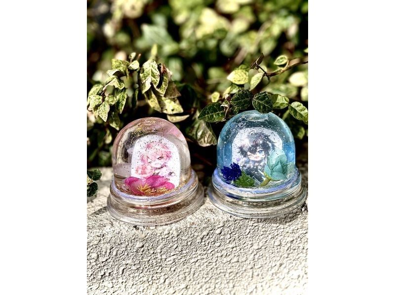 推しや大切な存在が映えるデザインを考える時間も楽しいポイントです。完成したら、キラキラと舞うラメとともに、あなたの特別なスノードームが完成。