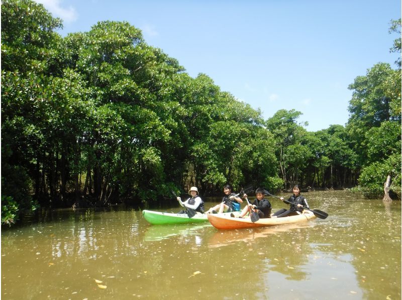 小さなお子様の場合は、お父さんお母さんと一緒に3人で。小学生や小さなお子様のいるご家族の場合は、お父さん、お母さんが、がんばって漕ぎましょう~。 カヤックでゆったり、まったり自然観測。家族や友達同士で沖縄のマングローブを満喫できます。
