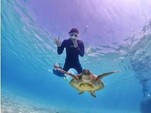 順番に綺麗なウミガメとのツーショット写真を撮ってもらえます