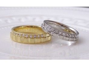 【ゴールドプラン】 本格的なゴールドのペアリングをふたりで手作り出来ます。 内側にはお好きなメッセージを刻む事が出来ます。 世界に2つペアリングを手作りしましょう! ふたりだけで宝石店を貸切!イギリス製のアンティーク家具や雑貨に囲まれて、 落ち着いたラウンジVIPルームで周りを気にせず、ふたりで楽しく手作り出来ます。 料金に18金ピンクゴールドもしくは18金イエローゴールドの材料代が含まれます。 ダイヤモンドや誕生石を埋め込みたい場合は1石6,600円の追加料金。 インスタグラム #シゲスミス で過去の先輩達の作品たくさん掲載中 ぜひご覧ください。 異性、同姓、どなたでも歓迎! 【カップルにうれしい特典】 おふたりの手作り風景を写真撮影致します。 CD-Rのデーターとフォトアルバムにしてプレゼント。 (後日ご自宅に無料で発送) キャッシャバックキャンペーン 手作りした写真をインスタグラムに 投稿してタグ付けすると、 ¥1,000円キャッシュバック中 ////////////////////////////////////////////////// 安心してください、 “不器用だから・・・”と思っている あなたでも手作り出来ます。 誰でも楽しく手軽に手作り出来る オリジナルプログラムをご用意しています。 また専門のスタッフが完成まで しっかりサポートしますので、 安心してオリジナル指輪が作れます。 具体的なデザインがなくても大丈夫。 ご来店から製作まで約2時間、1回のご来店でO,K! デザインのご相談 ↓ 指のサイズ確認 ↓ 工程を詳しく丁寧にお話いたします。 作り方の手順をご説明いたします。 ↓ 製作 ↓ 完成 ↓ 後日思い出のフォトアルバムをご自宅に発送 ※こちらのプランはゴールドのプランになります。 ゴールドとは 1、経年劣化や変色がほとんどありません。 2、サイズ直しが出来ます。 修理やリフォームを行う職人在中の店舗だからアフターサービスは安心 1、クリーニング、変形直しは永年無料 2、サイズ直しは購入から1年間何度でも無料
